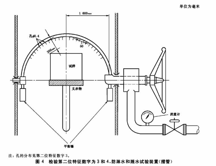 如果有關產品標準未做規定,被試外殼的支承物應開孔,以避免成為擋水板。將擺管在每一方