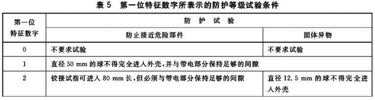 5? 第一位特征數字所表示的防止接近危險部件和防止固體異物進入的防護等級
