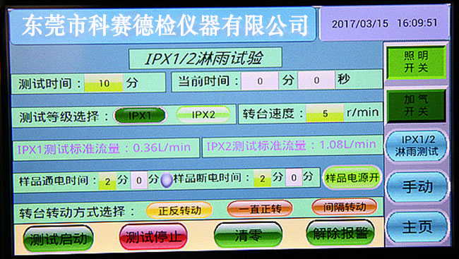 IPX防水試驗(yàn)設(shè)備也稱為淋雨試驗(yàn)箱或防水試驗(yàn)箱,IPX防水試驗(yàn)設(shè)備分為多個(gè)等級(jí),分別為IPX1-2,IPX3-4,IPX5-6,IPX7-8,IPX5-6-6K9K等多種等級(jí),具體根據(jù)用戶的測(cè)試要求進(jìn)行選擇,IPX防水試驗(yàn)設(shè)備適用于戶外燈具、家用電器領(lǐng)域、手表配件行業(yè)等。下面科賽德(DGKSD)小編把1-9防水等級(jí)的測(cè)試要求都列出來(lái)供大家參考。